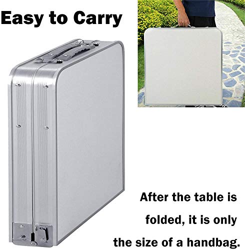 • 【Lightweight & Portable】: The folding picnic camping table only 4.3kg.The aluminum folding tables are easy to set-up and fold-away when not in use,with small storage capacity,so that you can store in any conner.Easy to transport and setup without any tools.