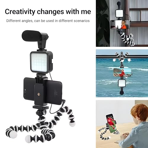 Generic - 7W Photography Phone Stand Includes Blukama PK-775 Remote Tripod with Microphone and LED Light Up to 3 Hours Battery Life, Black