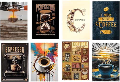 Generic - 8 لوحات فنية بسترات مغلفة بوستر ملصقات للديكور الكافيهات و ركن القهوه طباعه عالية الطراظ صورة للقهوه و محبين القهوه و للديكور الكفيهات (مقاس 30 * 20 لا يوجد إطار)