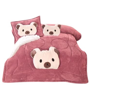 Generic - طقم لحاف فايبر أطفال قطيفة 8 قطع ، تصميم Bear, لون وردي ، تتضمن 2 لحاف 180 * 240 سم ، 2 وسادة 45 * 120 سم ، 2 خدادية 50 * 70 سم ، 2 تكيية 45 * 45 سم