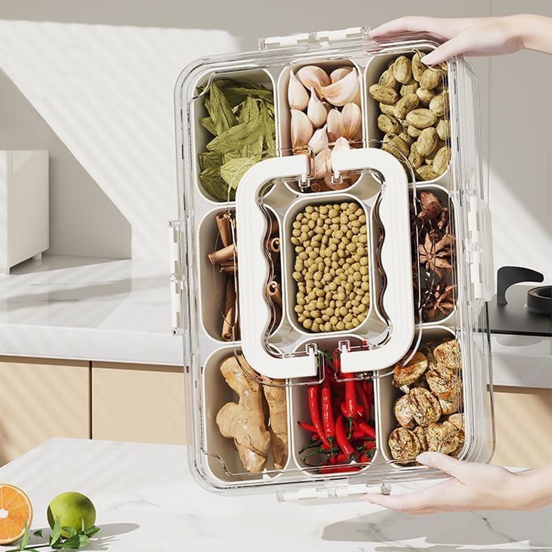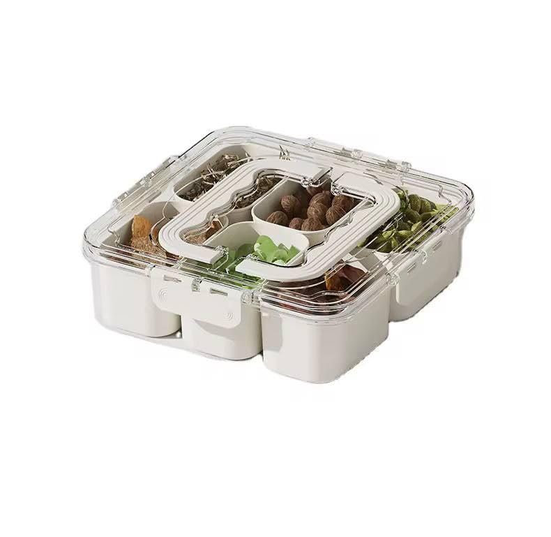 - تخزين متعدد الوظائف: يحتوي صندوق الوجبات الخفيفة متعدد الأغراض هذا على 6 حجرات مستقلة لتخزين الطعام بشكل منفصل، وتجنب الفوضى، بالإضافة إلى ضمان النظافة والترتيب، ويوفر تخزينًا آمنًا للوجبات الخفيفة والفواكه والتوابل والفواكه المجففة وغيرها.