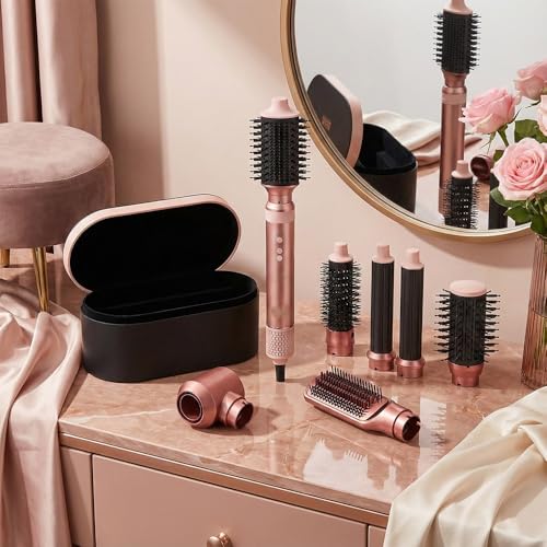 Generic - 8 in 1 Hot Air Hair Styler Brush for Drying, Straightening, Twisting, Root Lifting 1500W 3 Speeds 3 Temperatures with Storage Bag - 12 Months Warranty