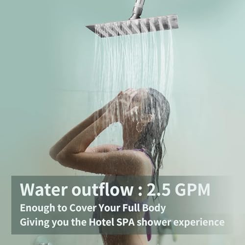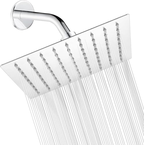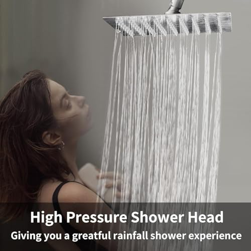 - [High Setting]: The shower head is 8 inches, a combination of ultra-thin and air which lead to high pressure and strong flow, also can work great under low water. The shower head always provides a strong, stable rain shower and gives you a comfortable experience.