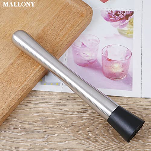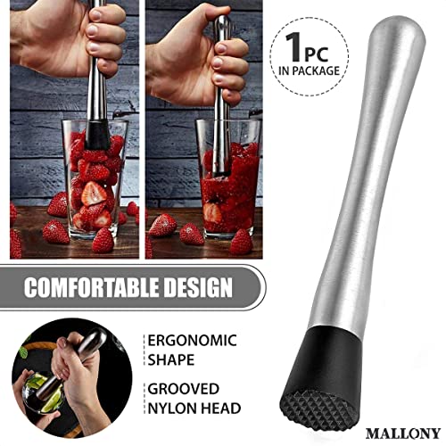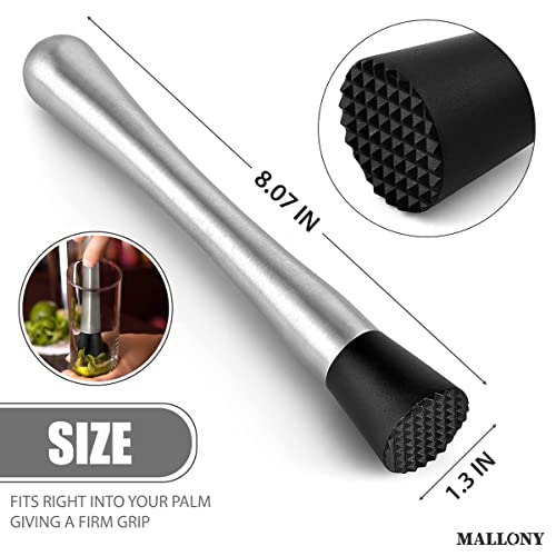 MALLONY - 8 Inches Professional Muddler for Cocktails Set - Stainless Steel Muddler Old Fashioned Cocktail Kit Ice Crusher - Cocktail Set Bartender Kit for Home Bar