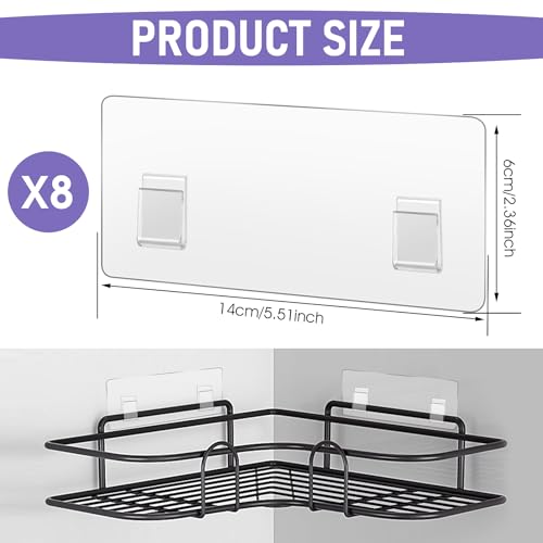- 【Transparent Waterproof Design】The shower caddy adhesive replacement is transparent design, will not affect the wall aesthetics. The flat shower caddy wall stickers is waterproof and dustproof, remains firm in all kinds of humid environments, perfect for use in bathrooms and kitchens.