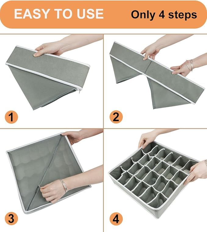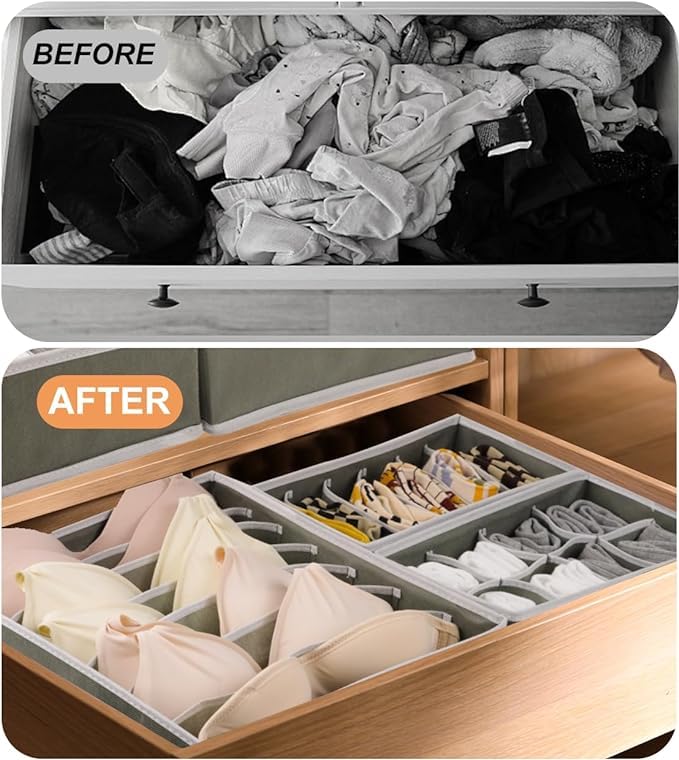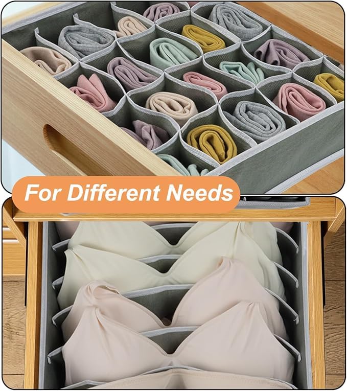 - 【منظمات أدراج للملابس】مع صناديق التنظيم الخاصة بنا، سيكون الدرج أو خزانة ملابسك مرتبًا ونظيفًا، مما يحسن بشكل كبير من استخدام مساحة الدرج ويساعدك على العثور على ما تريد. وهذا سيقلل بشكل كبير من الوقت الذي تقضيه في البحث عن الملابس.