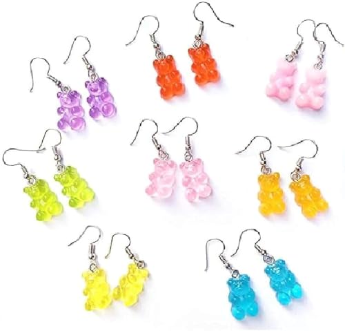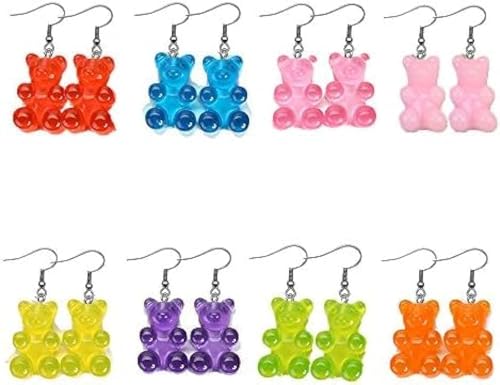 Generic - 8 Pairs Bear Earring Set, Colorful Resin Candy Cartoon Bear Earrings Cute