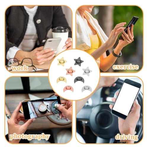 Excefore - 8 Pcs Cell Phone Ring Holder, Star And Moon Cell Phone Holder, Self-Adhesive, Small And Convenient, Suitable For All Kinds Of Smart Phones, Tablets, Phone Cases Diy Hanging Supplies, 4 Moon & 4 Stars