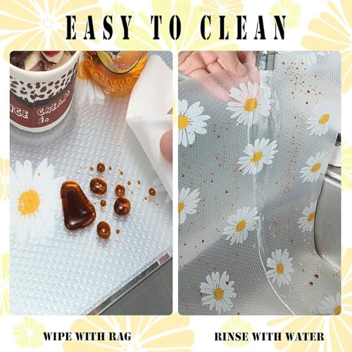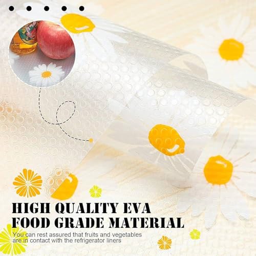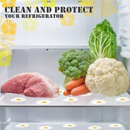 - تصميم مميز: مفارش مزينة بنقش زهور الأقحوان الجميلة باللونين الأبيض والأصفر، تضيف لمسة ربيعية منعشة للثلاجة