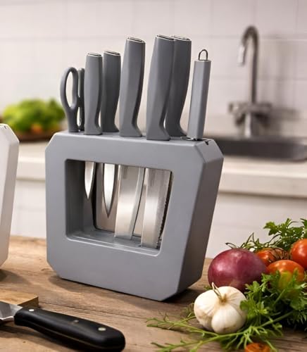 Generic - 8-Piece Knife Set - Includes 5 Cutting Knives, Shears, Cleaver, and Stand for Complete Kitchen Organization and Precision Cutting (gray)