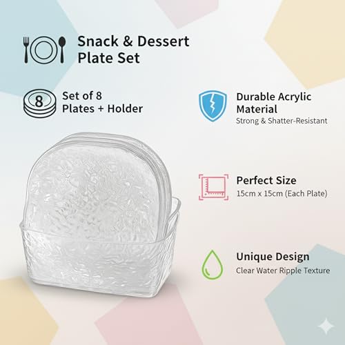 Generic - طقم أطباق تقديم تسالي وحلويات أكريليك مع حامل منظم، 8 قطع، أطباق مربعة 15×15 سم للمكسرات والشوكولاتة والضيافة للمطبخ والسفرة (شفاف)