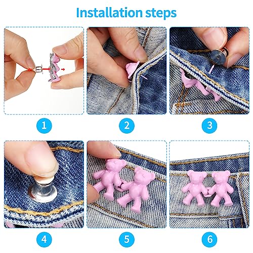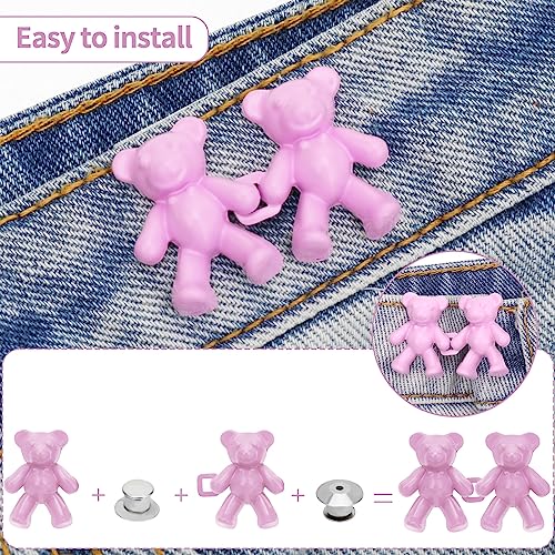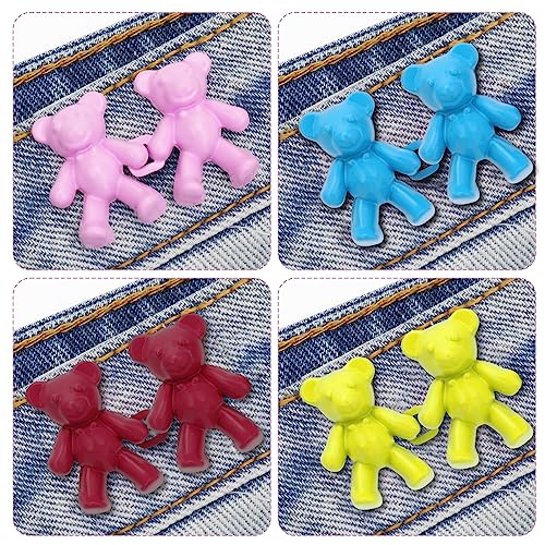 DIVINA VITAE - مجموعة أزرار جينز على شكل دب لطيف، قابلة للتعديل لتضييق خصر البنطلون بتصميم قابل للفصل، مشبك خصر قابل لإعادة الاستخدام، 8 مجموعات
