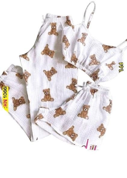 هنادي - بيجامة نسائية ثلاث قطع بخامة ريب قطن مضلع تصميم عملي ومريح وان سايز يناسب حتى 80 كيلو مثالية للنوم والبيت والاسترخاء Hn 1066
