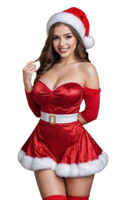 هنادي - قميص نوم تنكري كريسماس قطيفة أحمر مع طاقية ومعصم فرو أبيض – وان سايز حتى 80 كيلو – HN 9009