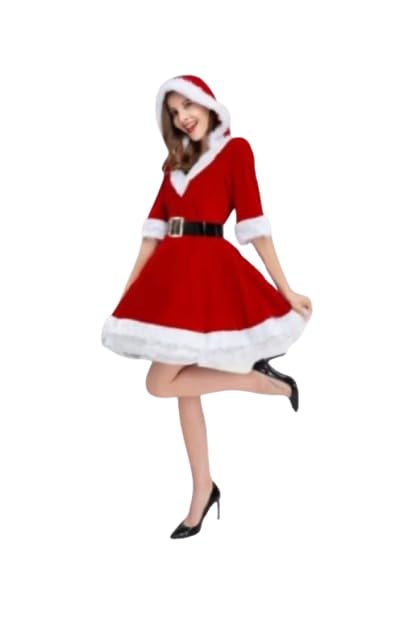 هنادي - قميص نوم تنكري كريسماس قطيفة مع فرو – لون ساوان حتى 80 كيلو – HN 9091