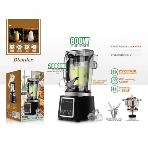 Generic - 800W High Speed Electric Blender – 2L Capacity – 25000RPM – Quiet Operation <82dB – Self-Cleaning Function – 6 Blades Stainless Blades