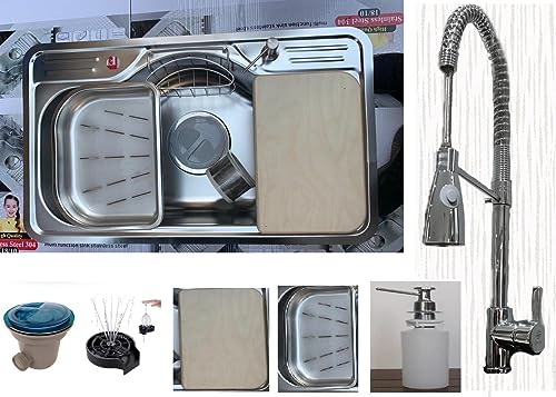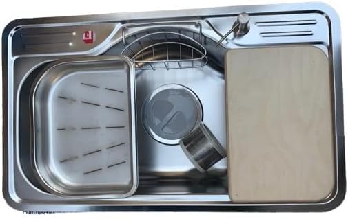 Generic - حوض مطبخ + صفاية فاكهة + اورمة خشب + صرف + شطاف أكواب الاتوماتك (85 سنتيمتر فى 50 سنتيمتر + الخلاط 1 * 1+ الصرف 6 بوصة