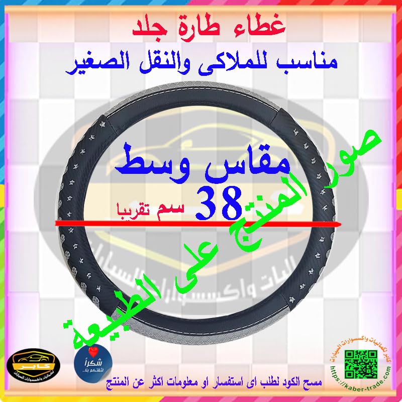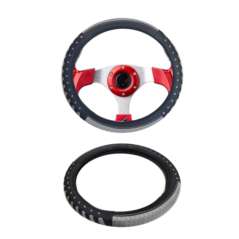 Generic - غطاء طارة دريكسون عجلة القيادة ، كفر وجراب جلد صناعى ، مضاد للانزلاق ، ذو ملمس ناعم ومريح ، مناسب لكل السيارات (اسود رمادى ، كود : 8526)- من KaberMisr 2020