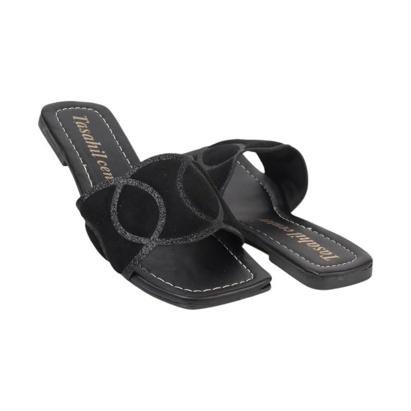 Generic - سليبر حريمى فلات جلد فى قماش 867 اسود 38