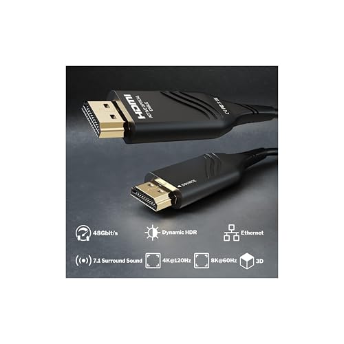 - 8K Ultra HD Support: 8K@60Hz for crystal-clear visuals Lossless Transmission: Maintains signal quality over 30m Flexible Fiber Optic Design: Easy to route and durable High-Speed Performance: Ideal for gaming, movies, and professional setups Wide Compatibility: Works with TVs, monitors, projectors, and gaming consoles