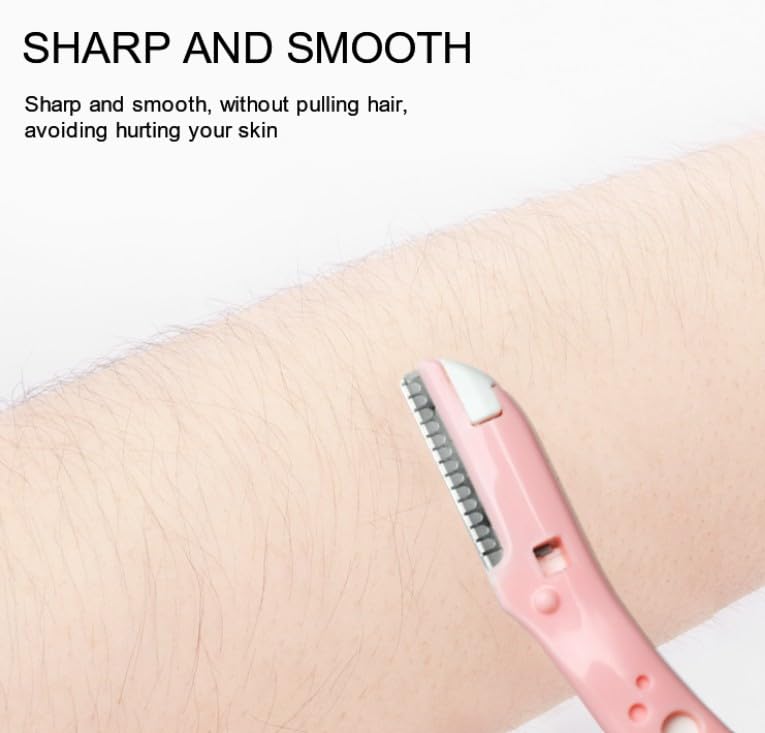 Generic - شفرات تشذيب الحواجب صغيرة بغطاء منزلق لطفية على البشرة لتشكيل الحواجب وإزالة شعر الوجه الخفيف والزغبي والتقشير، بينك ديزاين، 8 قطع