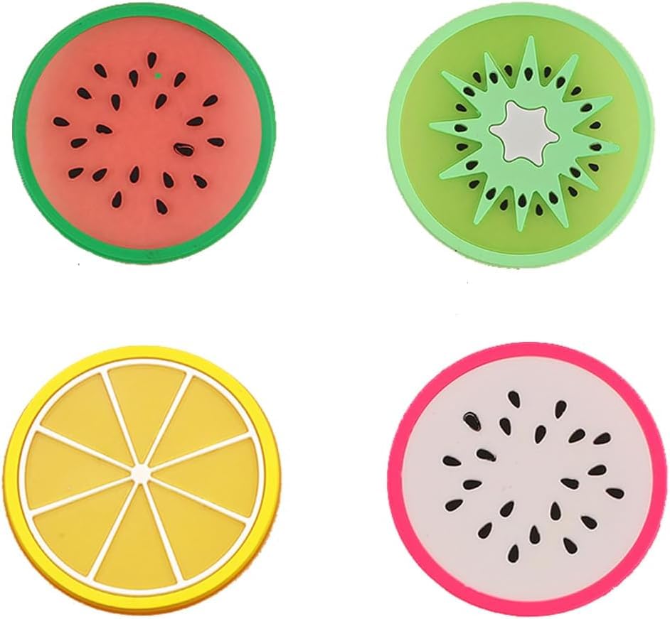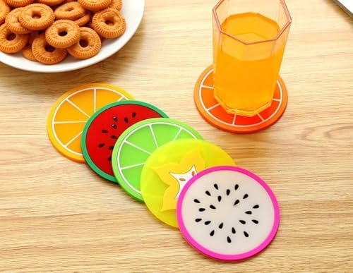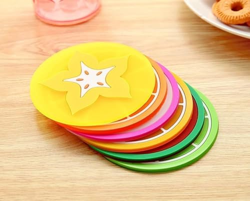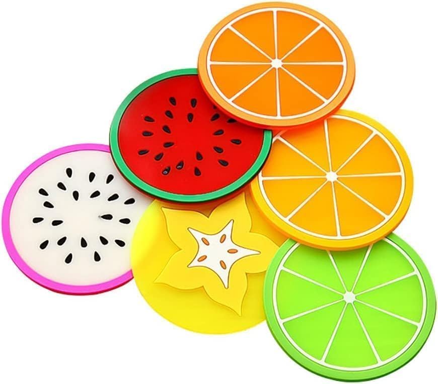 - VERSATILE SET: Package includes 6 colorful fruit-themed silicone coasters perfect for protecting surfaces in your bar, living room, kitchen, and office spaces