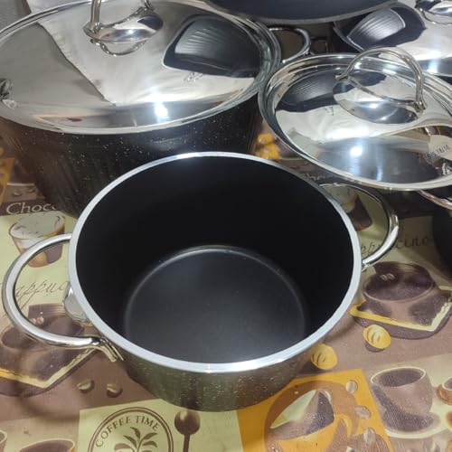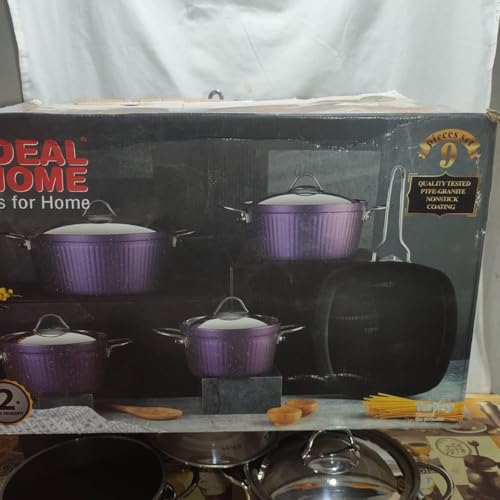 Generic - طقم حلة تركي طبقة تيلون 9 قطع تحانه 4 ملى سميك 1 جريل مقاس 26 سم و 1 حلة مقاس 18 سم و 1 حلة مقاس 20 سم و حلة مقاس 24 سم و حلة 28 سم متعدد الألوان اللون حسب الممتوفر بالمخزن