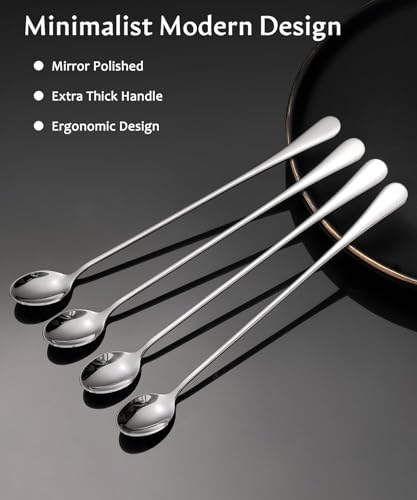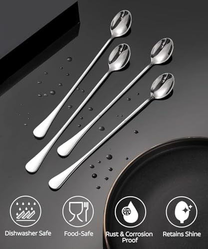 Oasisgalore - 9.5-Inch Long Handle Spoon, Ice Tea Spoons, Ice Cream Spoon, Long Coffee Spoons, Stainless Steel Stirring Spoons, Set of 4