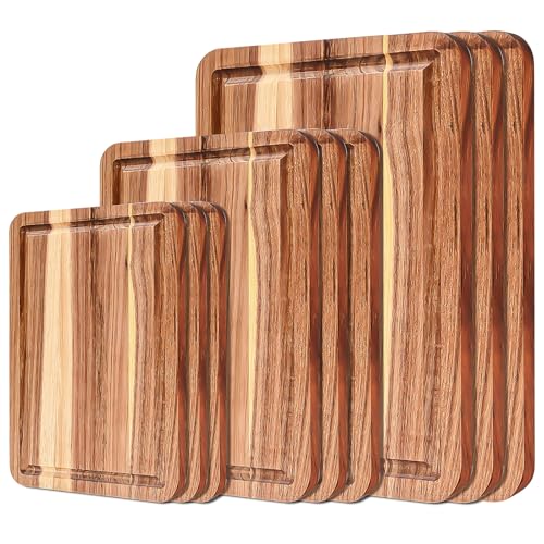 - Acacia Wood Cutting Board Set: Package Includes 9 pieces of wood cutting board in 3 different sizes (15 x 10 inch, 12 x 8 inch, 9 x 6 inch), making it perfect for preparing various foods like meat, cheese, bread, fruits, and vegetables