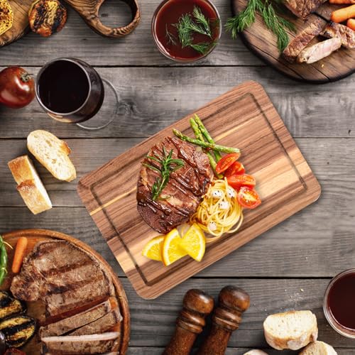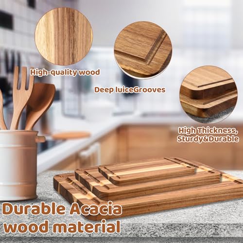 - Sturdy Construction: Made of premium acacia wood, with a thick and durable build, these acacia cutting boards can withstand heavy chopping, slicing, and dicing, the solid acacia wood is highly resistant to scratches and warping, ensuring long-term performance