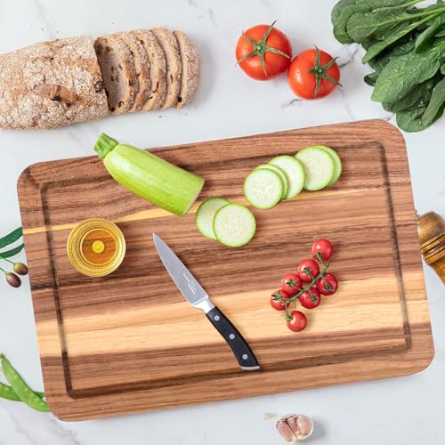 - Built-in Handle & Juice Groove: Each board features a built-in handle for easy carrying, the deep juice groove effectively collects excess liquids from fruits, meats, and vegetables, preventing spills and keeping your countertops clean