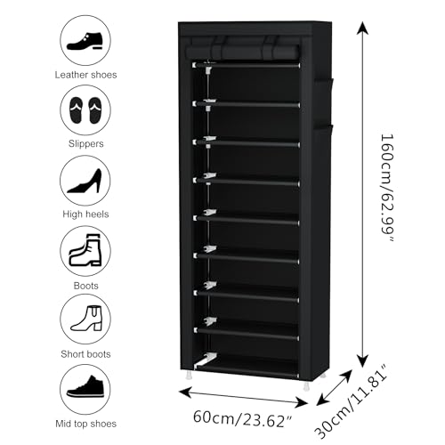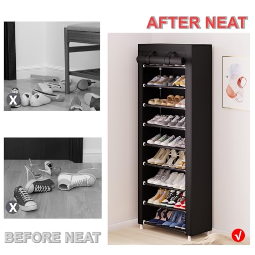 Generic - 9-Tier Portable Shoe Rack Organizer with a Nonwoven Fabric Cover, a Tall Shoe Shelf for Closets, Hallways, Bedrooms, and Entryways - Black