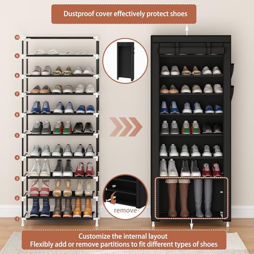 - Dustproof Fabric Cover: Comes with a zippered, roll-up nonwoven fabric cover that keeps your shoes protected from dust and dirt while also concealing them for a tidier appearance.