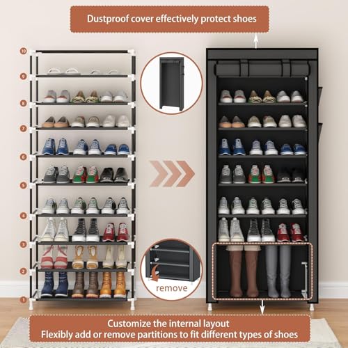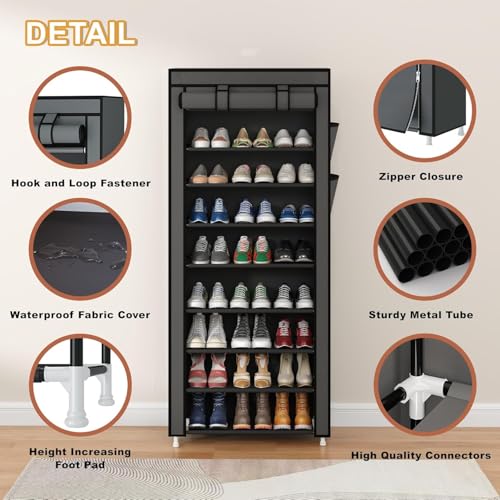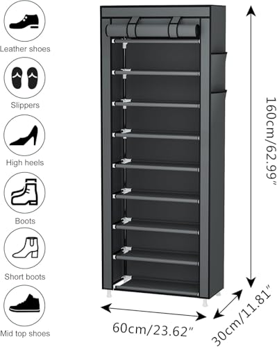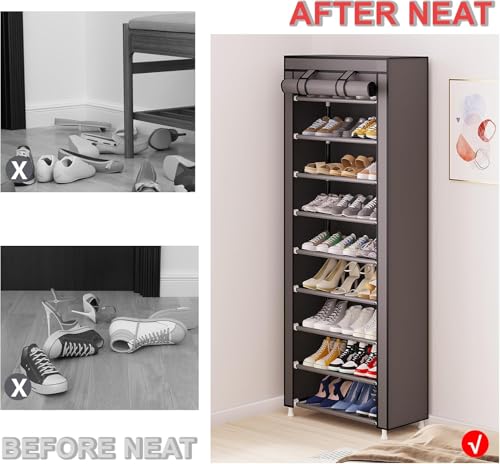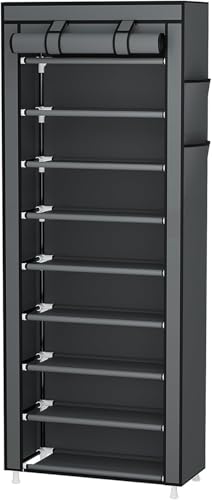 Generic - 9 Tier Shoe Rack Portable Shoe Rack Organizer with Non-Woven Fabric Cover for Closet Hallway Bedroom Entryway Grey