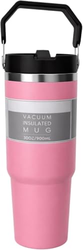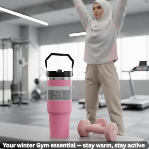 عام - 900ml Vacuum Insulated Stainless Steel Thermal Cup with Leakproof Lid and Straw and Handle for Travel Gym Pink