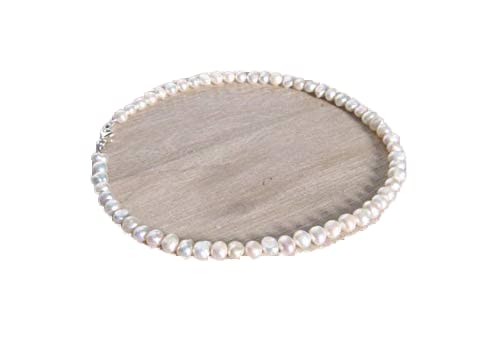 generic - 925 sterling Silver Anniversary Gift 4mm Stracking White Freshwater pearl Necklace Round, Smooth 16" for mens, womens, gf, bf & Adult.