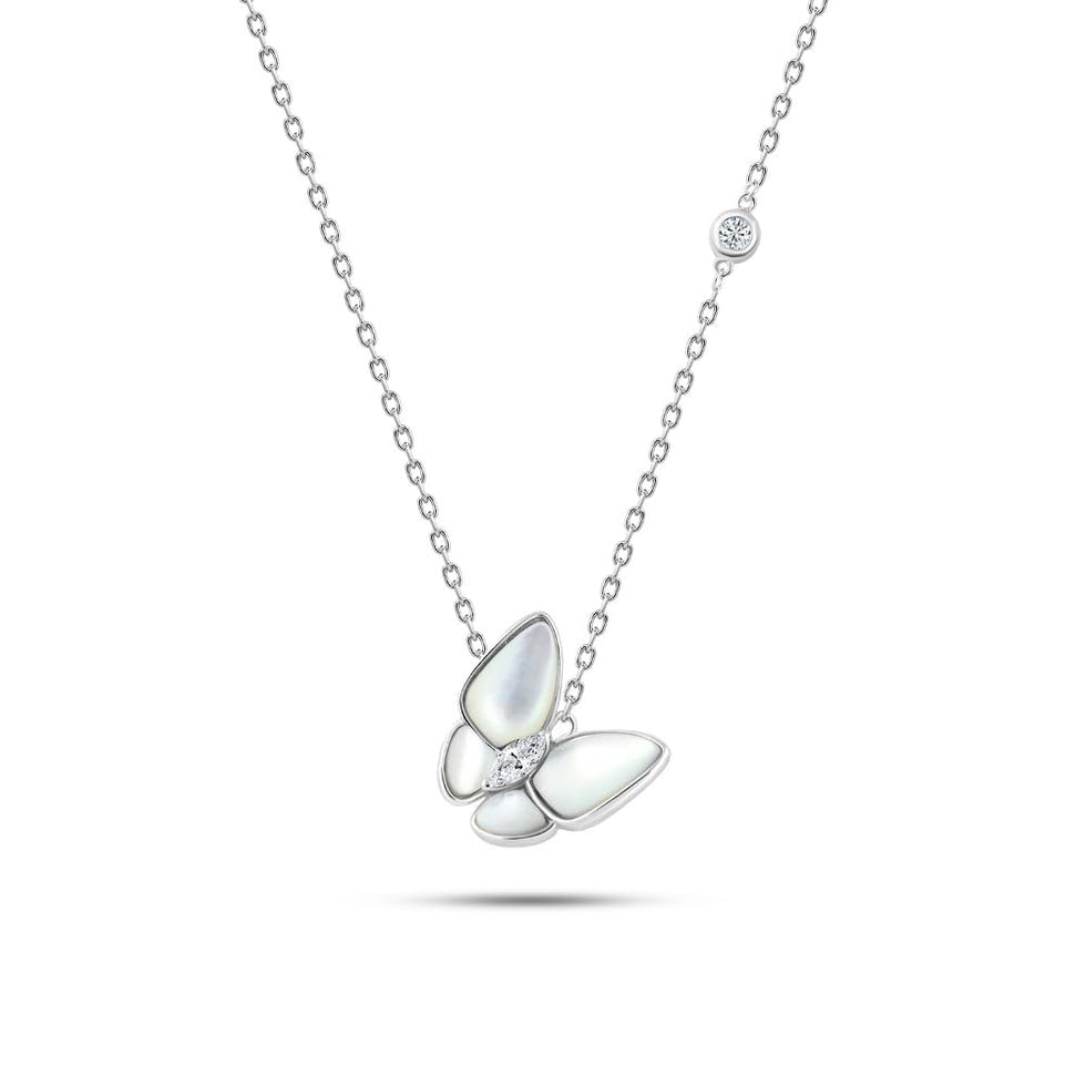 Generic - 925 sterling silver butterfly necklace with white of-pearl stone