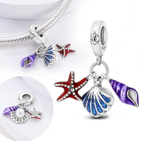 Generic - 925 Sterling Silver Charm - Star, Shell, Shell - Compatible with Pandora and Regular Bracelets & Chains - It weighs 3g