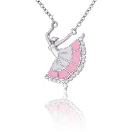 Generic - عقد بقلادة راقصة الباليه من الفضة الاسترلينية عيار 925 مع مينا بينك وزركونيا لامع