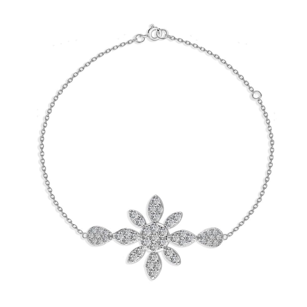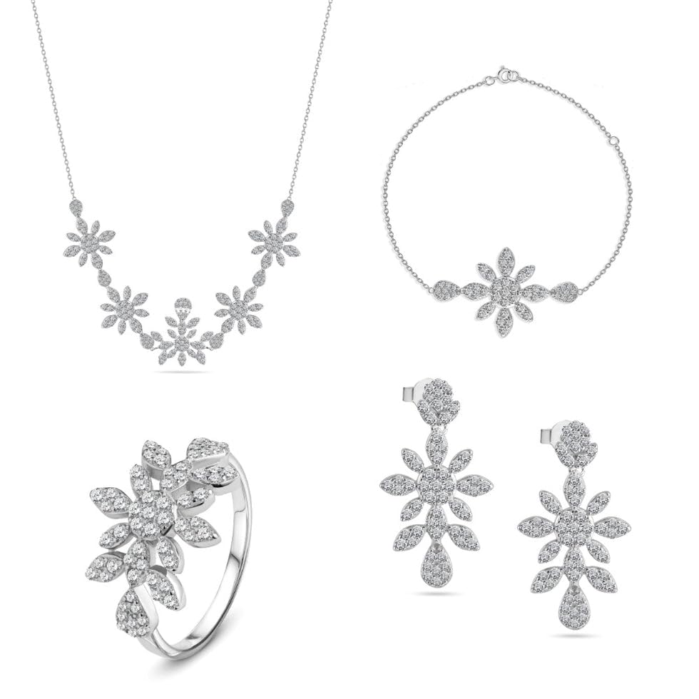Generic - 925 Sterling Silver Jewelry Set with Zircon – Floral Design Featuring Necklace, Bracelet, Ring, and Earrings,size9