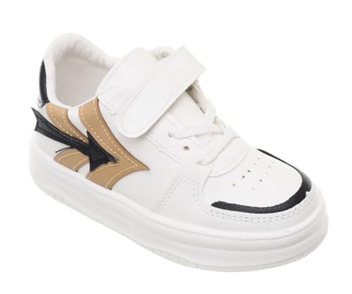 99.99 - 99.99 Kids' Leather Sneakers with Laces, Hook-and-Loop Strap, and Side Arrow Detail - White/Beige (30)