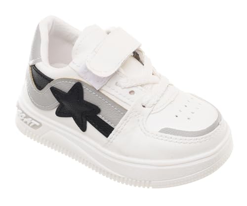99.99 - حذاء رياضي جلد للأطفال برباط وشريط لزق ونجمة من الجانب من 99.99، أسود ورمادي