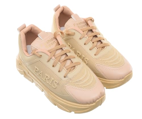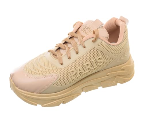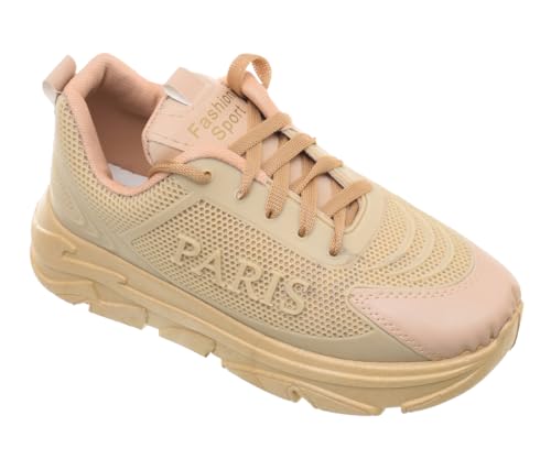 99.99 - 99.99 woman Leather and Elastic Lace-Up Sneakers featuring Side Embossed 'Paris' Detail - Beige