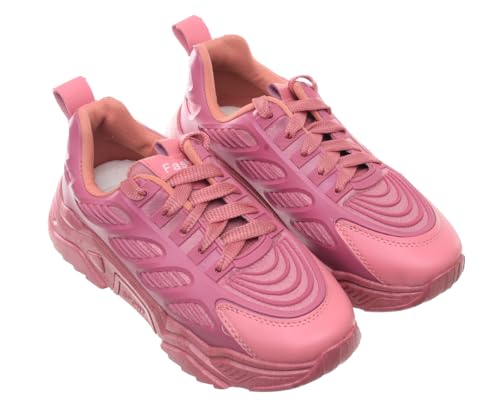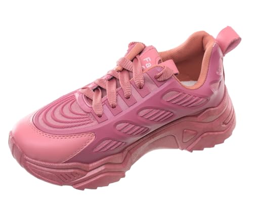 99.99 - 99.99 Womans' Leather and Elastic Lace-Up Sneakers - Fuchia (38)