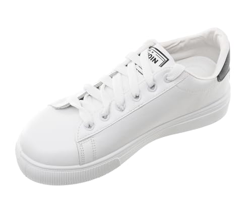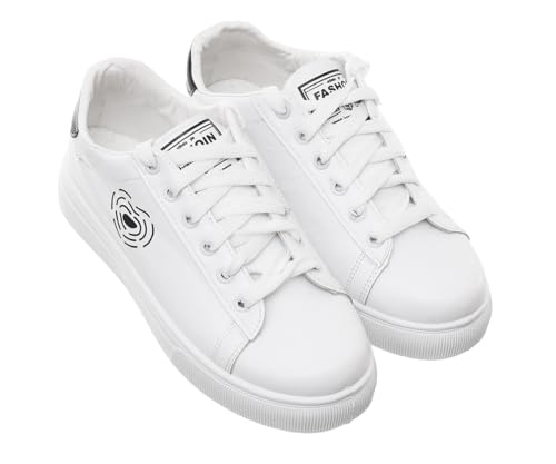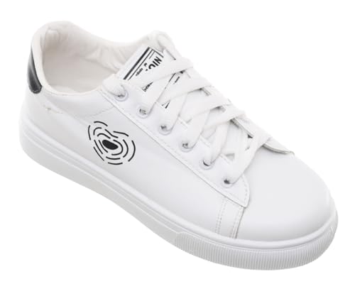 99.99 - حذاء رياضي نسائي جلد برباط بتصميم قلب بالجانب من 99.99، مقاس 39 EU، أبيض وأسود