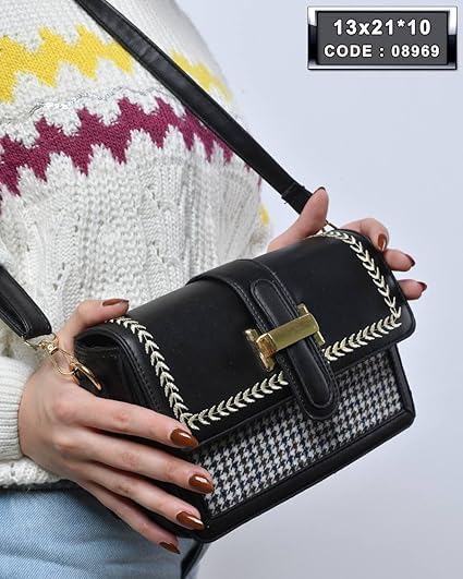 9Street Corner - شنطة كروس جلد للنساء من 9 ستريت كورنر 10×21×13 لون اسود 8969
