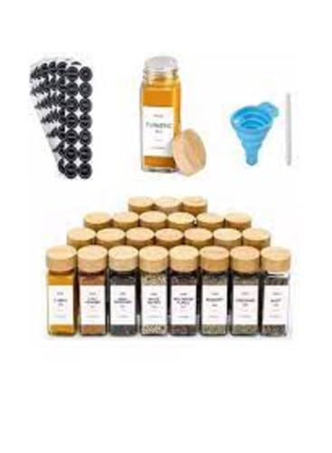 generic - A 24-piece spice set with small stickers to classify spices. The jars are made of high-quality glass with a tightly sealed wooden lid.