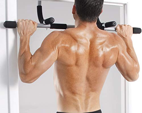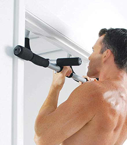 - Easy to install : The adjustable design easily fits on any standard doorway 24 inches - 32 inches. Door frame pull up bar uses leverage to hold against the doorway . Without screws, the door will not be damaged, nor will it take time to assemble.