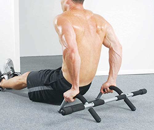 - Multifunctional Training Bar :Combines every exercise you need to build a powerful upper body. You can hang the pull up bar high on your doorframe or move it to the ground, used for pull-ups, push-ups, chin-ups, dips, crunches, and more.Workout your back, chest, arms & abs with one piece of fitness equipment in your home rather than crowed outdoor gym that protect you from the risk of viral infection.
