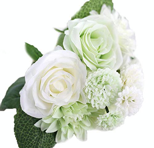 Other - A bouquet of roses and dahlia flower high-grade artificial plants holding flowers FZW2 white green